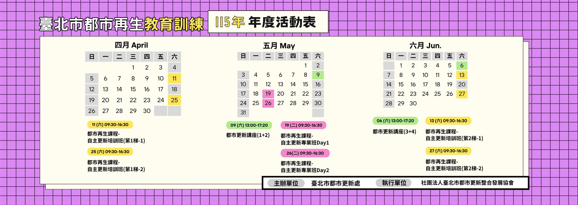 | 1 | 16:10 - 17:10 | 結訓活動 | 研習分享、頒發結訓證書、專班合影 | 1.臺北市都市更新處 2.協會指派 |